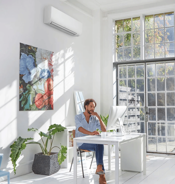 Additionally we can utilise refrigerant split systems to provide heating, cooling and also hot water via an indirectly heated hot water cylinder